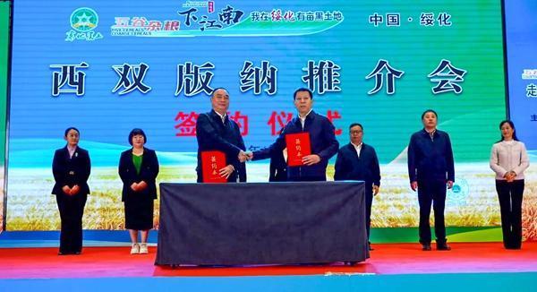 签约环节上,绥化市商务局与西双版纳傣族自治州商务局签署对口合作框架协议;绥化市盛昌农业集团有限公司等绥化市优质农产品企业与西双版纳康农农业发展有限公司等西双版纳企业和其他域外客商代表共计签署10个合作项目。